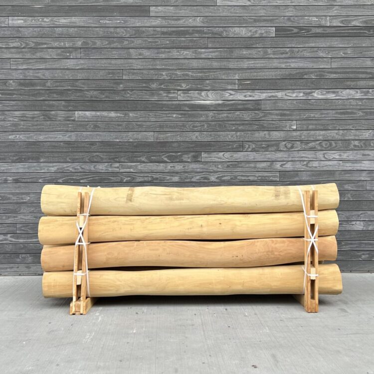 entrindet und entsplintet, auf Kern handfein geschliffen, Durchmesserangaben entsprechen dem Zopfmass (dünnes Ende)